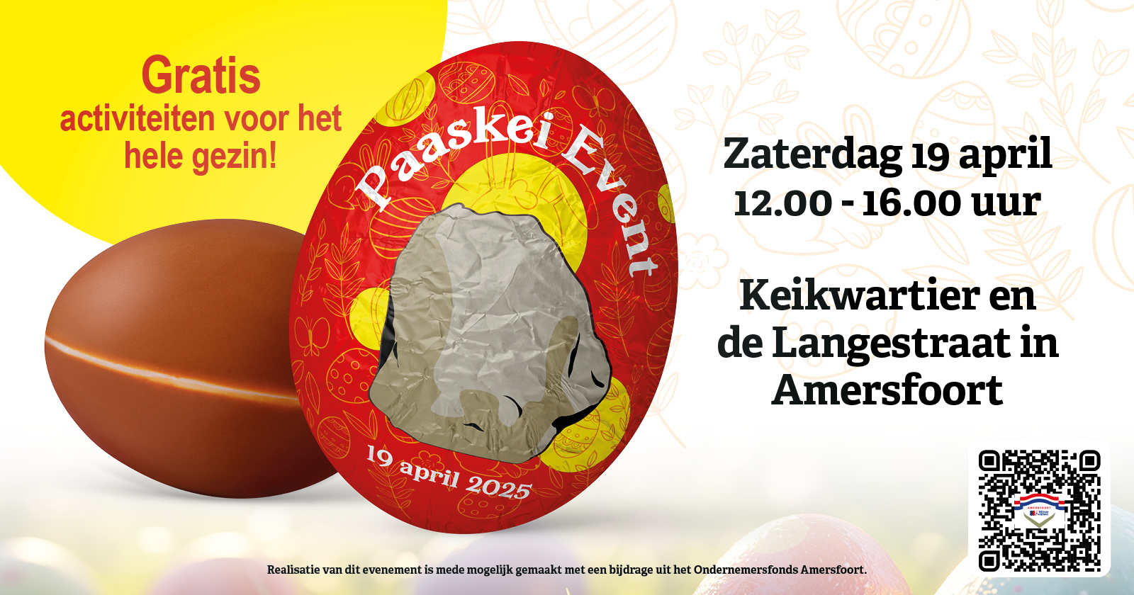 Het Paaskei Event 2025 werd mogelijk gemaakt door de Winkeliersvereniging Keikwartier, met steun van het Ondernemersfonds Amersfoort. Speciale dank gaat uit naar Jamin en Kruidvat voor het leveren van de paaseitjes, en naar Ceemani in de Amicitia-koopgoot voor het beschikbaar stellen van haar winkel. Bedankt!